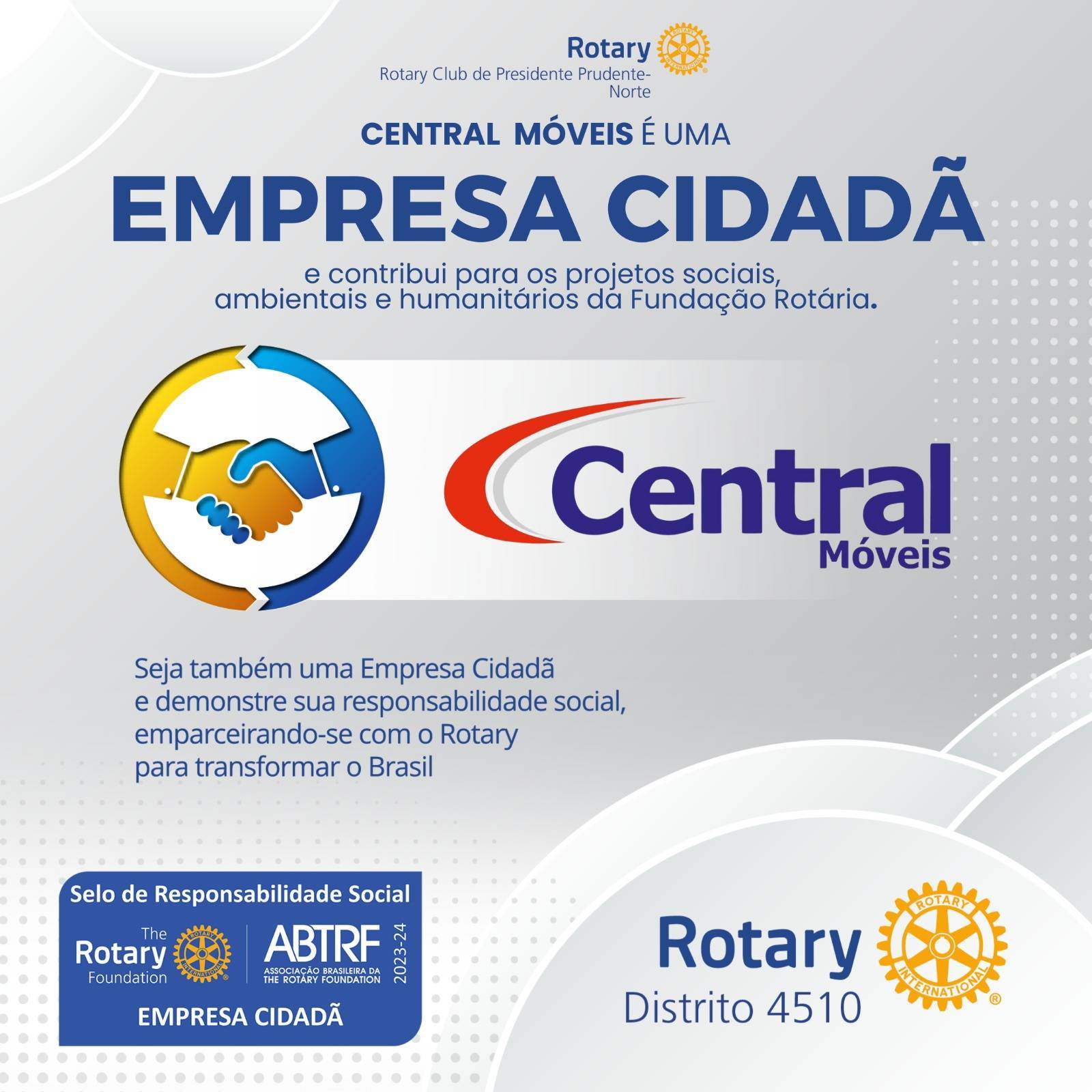 O Rotary Club de Presidente Prudente - Norte - Distrito 4510, agradece à adesão da CENTRAL MÓVEIS ao projeto EMPRESA CIDADÃ.